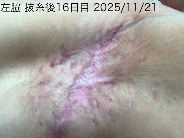 【70日目】 ワキガ手術後の右脇と左脇 アフター 2025 11/21 広告 手術後の経過 ★★キャンペーン情報をチェック!★★ 美容クリニックでは不定期でキャンペーンが行われることがあります。安心のクリニックを厳選しましたので、ぜひチェックしてみてください。 ・【東京プラチナムクリニック】の最新キャンペーンはこちら ・【フェミークリニック】の最新キャンペーンはこちら ・【新宿御苑 美容外科・美容皮膚科クリニック】の最新キャンペーンはこちら 赤みひいてきたよね。 左脇の傷あとはかわいいもんだ。 \Amazon最新キャンペーンはこちら/ 手術後の経過 よかったらシェアしてね! URLをコピーしました! URLをコピーしました! 【69日目】 ワキガ手術後の右脇と左脇 アフター 【71日目】 ワキガ手術後の右脇と左脇 アフター 関連記事 【219日目】ワキガ手術後の右脇左脇 アフター画像 突っ張りつっぱりい! April 19, 2026 【218日目】ワキガ手術後の右脇左脇 アフター画像 手術しか箇所の毛 April 18, 2026 【217日目】ワキガ手術後の右脇左脇 アフター画像 以前の服は処分してもいいかも April 17, 2026 【216日目】ワキガ手術後の右脇左脇 アフター画像 タイヤパンクした April 16, 2026 【215日目】ワキガ手術後の右脇左脇 アフター画像 日課の運動 April 15, 2026 【214日目】ワキガ手術後の右脇左脇 アフター画像 肉とか豆腐とか魚とか April 14, 2026 【213日目】ワキガ手術後の右脇左脇 アフター画像 汗をかいても平気 April 13, 2026 【212日目】ワキガ手術後の右脇左脇 アフター画像 朝から坂道ダッシュ April 12, 2026
