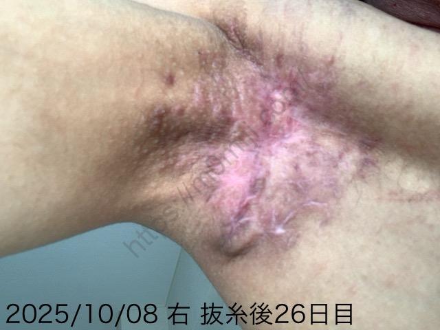 【26日目】 ワキガ手術 抜糸後 2025 10/08 広告 手術後の経過 右わき術後 ★★キャンペーン情報をチェック!★★ 美容クリニックでは不定期でキャンペーンが行われることがあります。安心のクリニックを厳選しましたので、ぜひチェックしてみてください。 ・【東京プラチナムクリニック】の最新キャンペーンはこちら ・【フェミークリニック】の最新キャンペーンはこちら ・【新宿御苑 美容外科・美容皮膚科クリニック】の最新キャンペーンはこちら 右の臭い、まったく無し。 改めてワキガ手術やってよかった。 \Amazon最新キャンペーンはこちら/ 手術後の経過 右わき術後 よかったらシェアしてね! URLをコピーしました! URLをコピーしました! 【25日目】 ワキガ手術 抜糸後 【27日目】 ワキガ手術 抜糸後 関連記事 【219日目】ワキガ手術後の右脇左脇 アフター画像 突っ張りつっぱりい! April 19, 2026 【218日目】ワキガ手術後の右脇左脇 アフター画像 手術しか箇所の毛 April 18, 2026 【217日目】ワキガ手術後の右脇左脇 アフター画像 以前の服は処分してもいいかも April 17, 2026 【216日目】ワキガ手術後の右脇左脇 アフター画像 タイヤパンクした April 16, 2026 【215日目】ワキガ手術後の右脇左脇 アフター画像 日課の運動 April 15, 2026 【214日目】ワキガ手術後の右脇左脇 アフター画像 肉とか豆腐とか魚とか April 14, 2026 【213日目】ワキガ手術後の右脇左脇 アフター画像 汗をかいても平気 April 13, 2026 【212日目】ワキガ手術後の右脇左脇 アフター画像 朝から坂道ダッシュ April 12, 2026